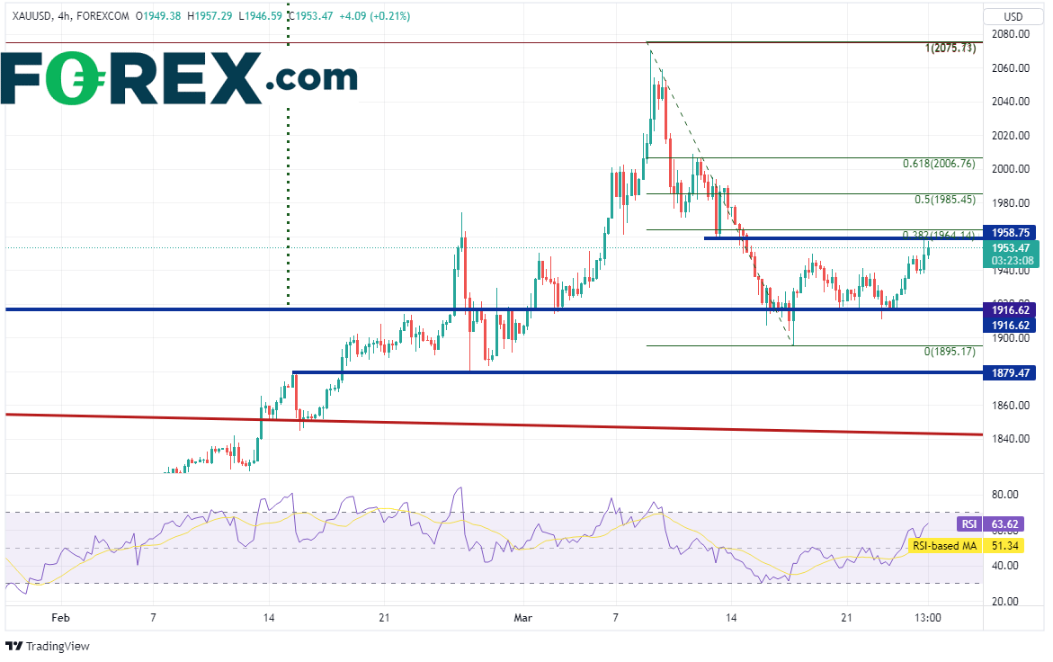 担心着俄乌冲突的投资者现在又添一层焦虑。美国总统拜登本周前往欧洲,与北约盟国商讨当前局势。双方会面后爆出的媒体头条显示,北约正在为发生俄罗斯核事件的风险做准备。拜登还跟北约说,支持北约在东线增派兵力。还有,此前有消息称,七国集团计划就俄罗斯使用化学武器和核武器对其发出警告。这些消息只会升级俄罗斯与西方国家之间的紧张关系,造成更多的不确定性。资金因此涌入黄金避险。