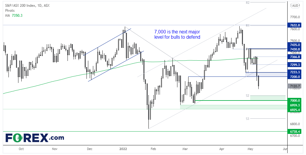 ASX200指数2022年5月9日收于7120.7,跌幅1.18%