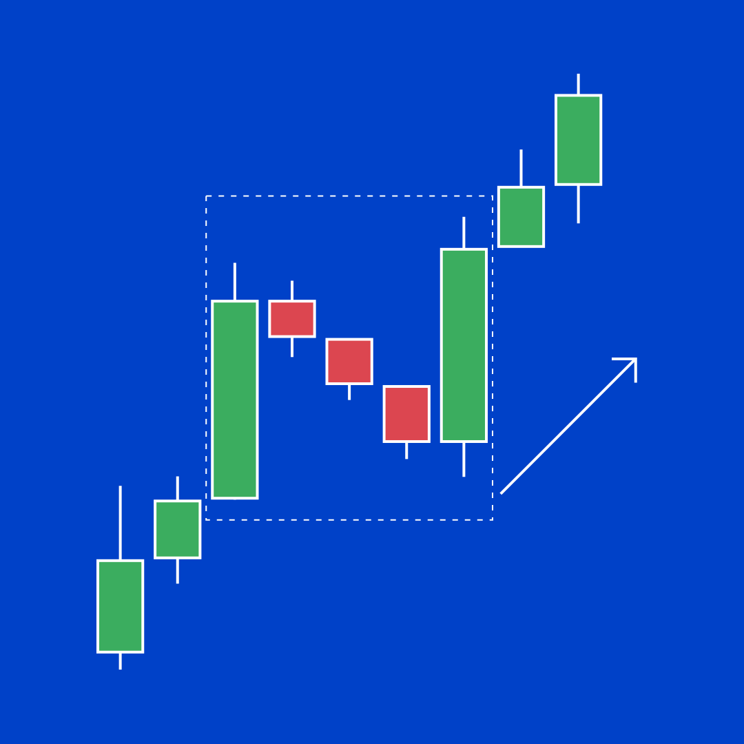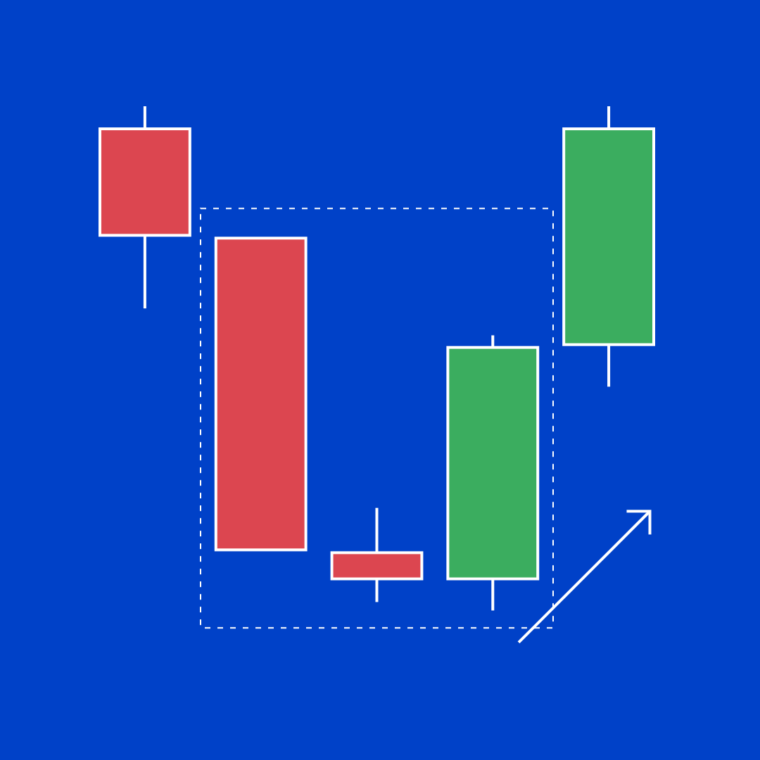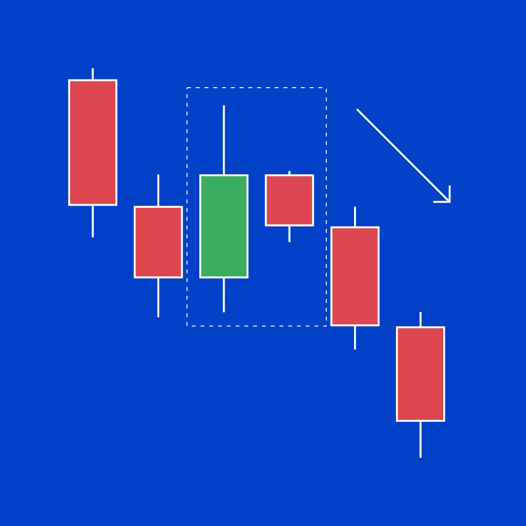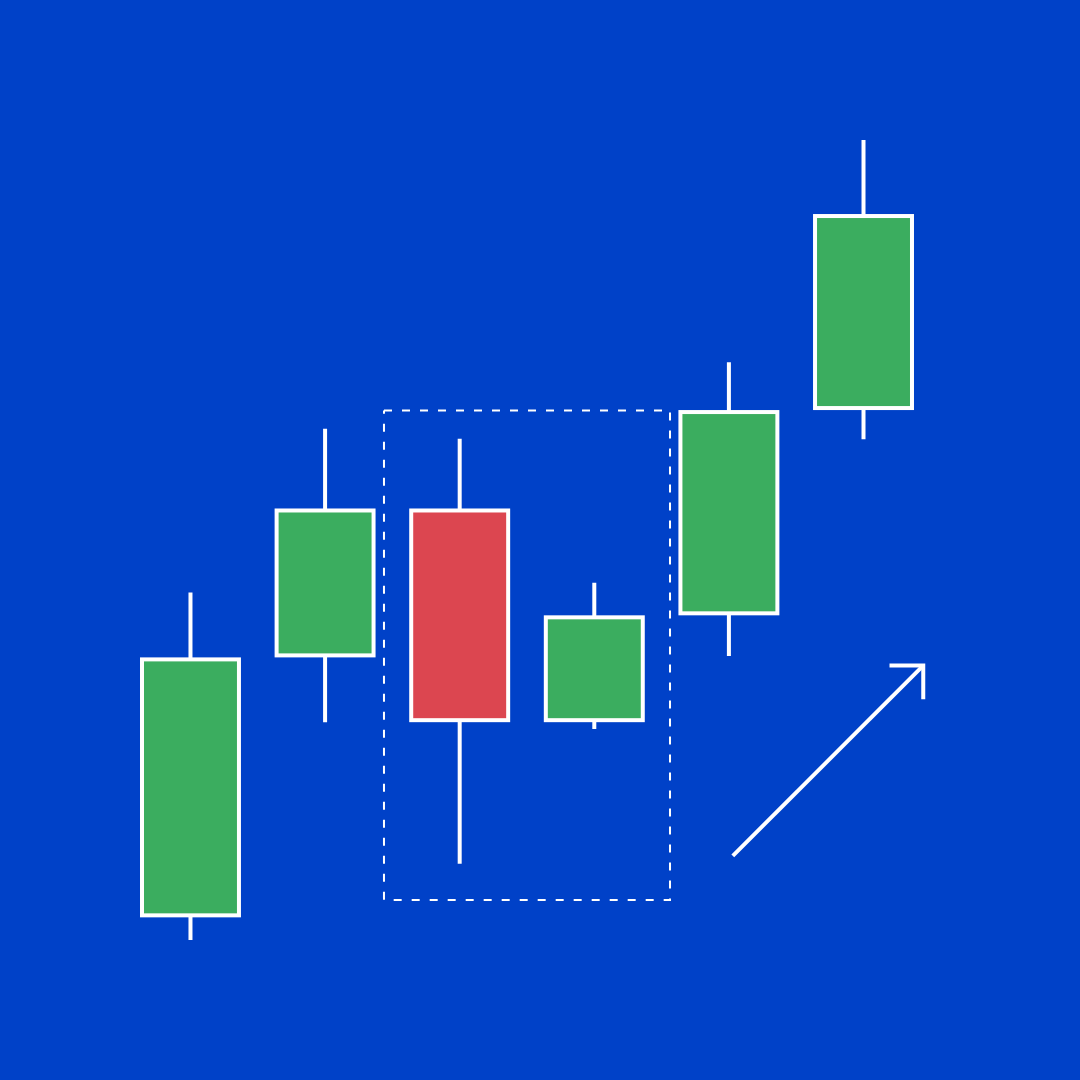 - 三根实体较小的阳线,悉数落于第一根蜡烛的范围内