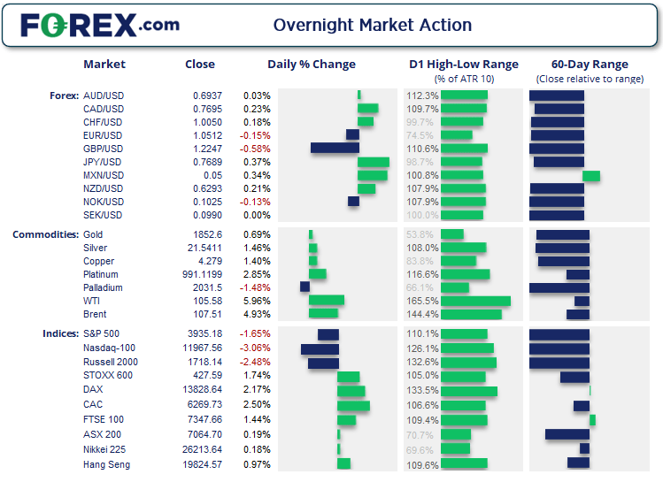 乌克兰指责俄罗斯军队的占领行动迫使首都基辅减少来自俄罗斯的天然气供应。乌克兰仍是俄罗斯对欧输气的重要枢纽,预计输气量已减少25%左右。昨天油价反弹,其中西得州原油回到100上方并收上其50天指数移动均线。天然气连续第二天反弹,至7.66。