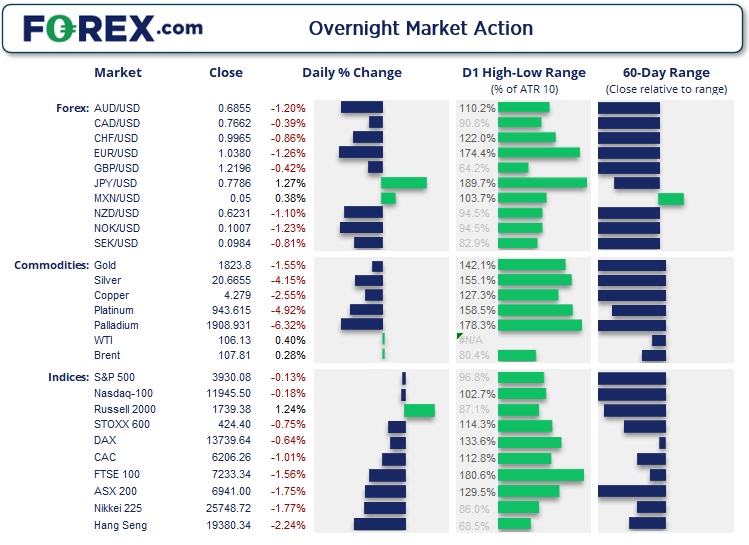 美元指数隔夜涨至2002年12月以来最高点(逼近105),而欧元/美元跌至2017年低点上方17点子的水平。澳元/美元自2020年6月以来首次收于0.9600下方;纽元/美元触及23个月新低。