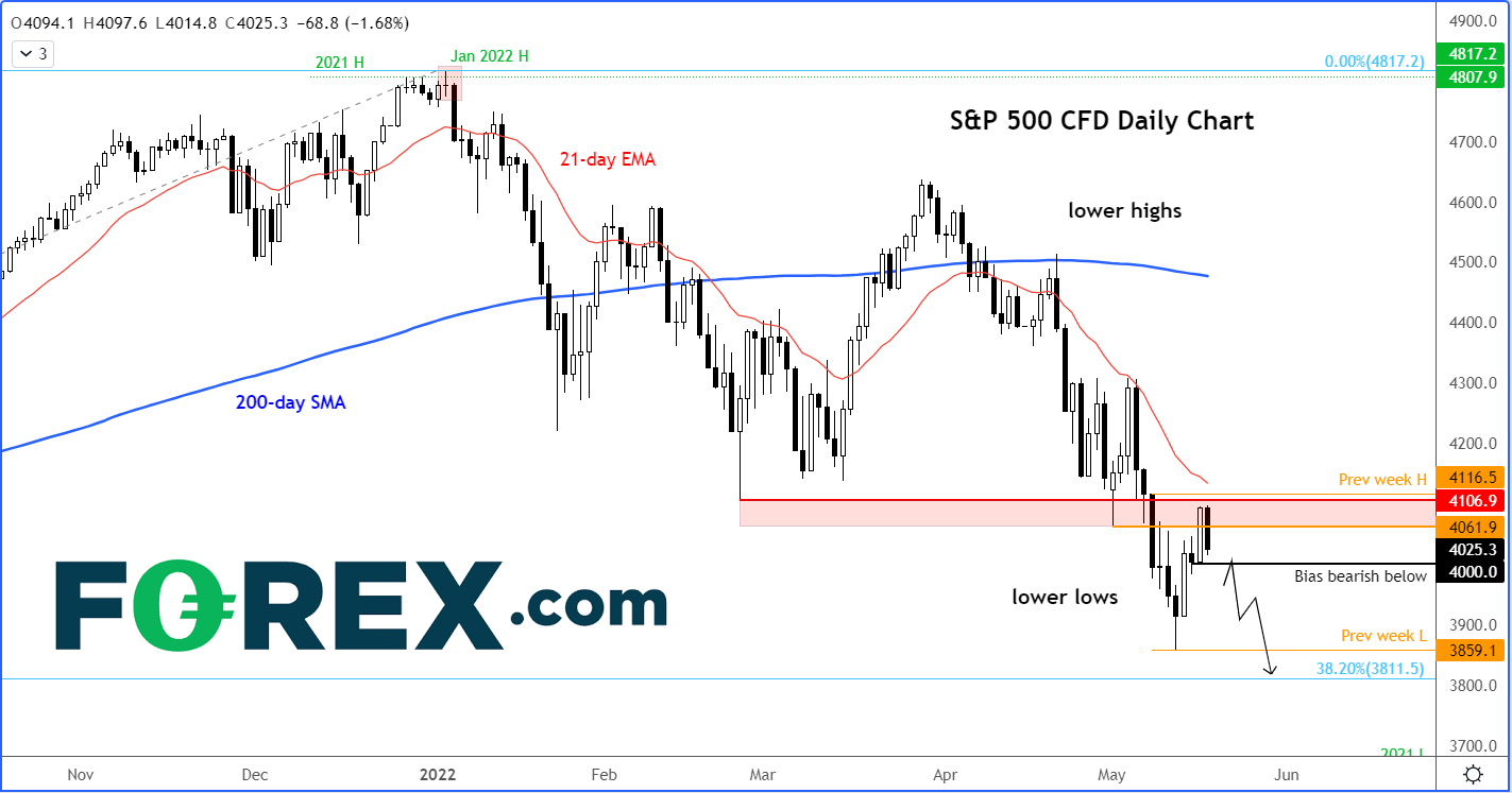 标普500指数已回吐昨天大部涨幅,若今天收于4000点以下,则将构筑新的利空信号,或导致股指探向年内新低。