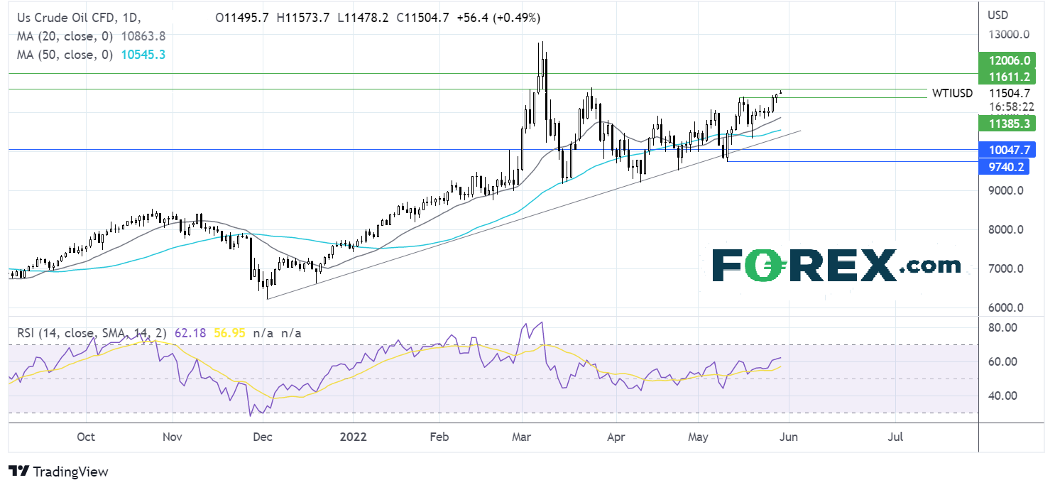有关中国放松疫情封控的乐观情绪推动油价上涨,使其交投于2个月高点附近。市场目前等待欧盟就禁运俄罗斯原油的关键投票结果。