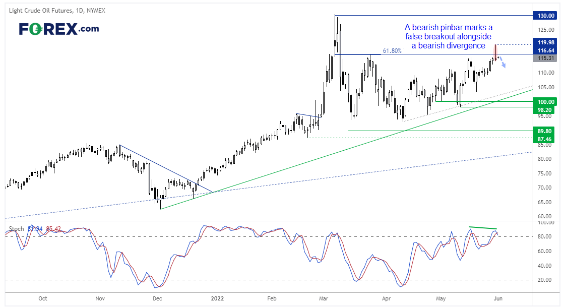 油价的反弹势头一直进展良好,昨天还创下高点。得益于美元下跌和美国驾车出游季导致库存锐减,油价打破狭窄的盘整区间。而中国确实放松疫情封控措施以及欧盟在禁运俄罗斯原油方面没有之前那么激进,更是增添了油价的上涨动力。昨天近月期货合约上破至12周高点并且逼近120,但最终没能攻克该位。
