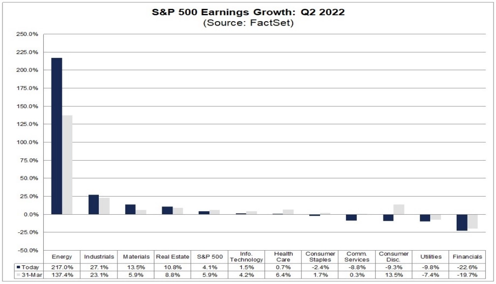 我们的经济学家Fawad Razaqzada说道:“衰退警告到处可见,股市业已进入熊市。最近我们还看到政府债券收益率下挫,跌至数周低点。在即将到来的财报季,我们可能看到一些相当难看的销售与利润数据,衰退信号进一步涌现。最近几周,分析师因为宏观背景恶化而迅速下调盈利估计值。所以,业绩报告的比较门槛已经降低。然而,失望可能依然在所难免。”