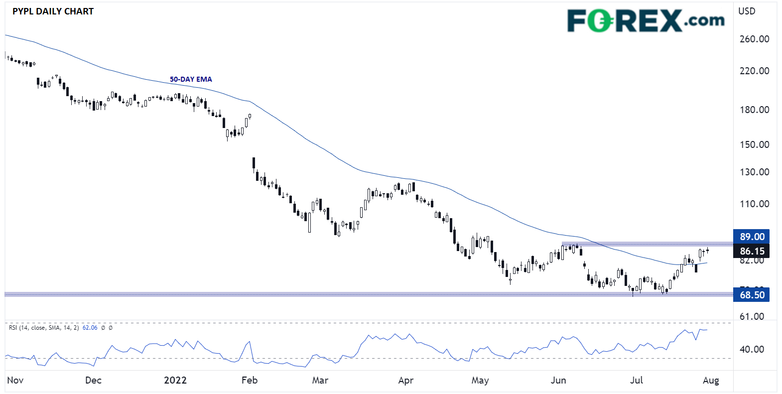 PayPal在上季度的财报中因为严峻的宏观经济形势下调对2022年全年盈利的指导意见,在通胀上升、中国疫情管控与俄乌战争背景下,将新开账户数预期值减半,至1000万户。有鉴于此,交易者迫切希望听到公司对业绩的最新看法,了解管理层是否认为宏观经济形势已然稳定下来,及其对公司未来的影响。