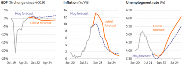 英国央行在对经济的预测方面一直相当悲观,这次认为衰退持续一年以上、通胀率将升至13%以上,但其预测业绩始终不太好。而且,市场已计入了很多负面消息。所以,如果英镑只是小幅下跌即开始反弹的话,我也不会感到意外。