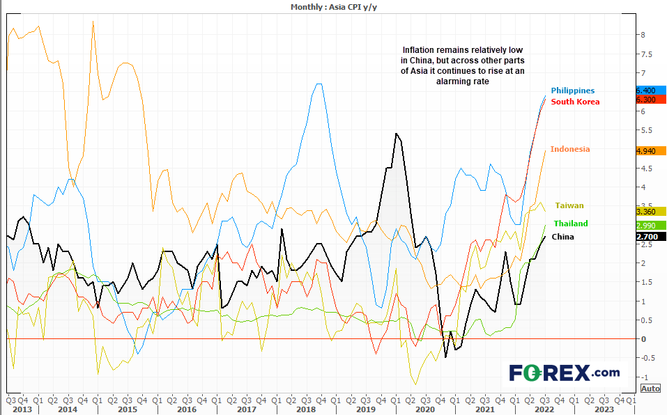 但亚洲其它国家和地区的情况并非全部如此。中国2.7%的通胀年率是亚洲地区最低的水平之一,低于泰国的3.0%。菲律宾和韩国的CPI分别高达6.4%和6.3%,这些主要出口国高企的物价会反作用于其贸易伙伴国(比如西方国家)的物价。所以,通胀本质上会在全球之间循环反复,迫切希望看到通胀尽早下降的读者不要忘了这点。我个人的看法是,西方国家的通胀一方面业已(或接近于)触顶,另一方面可能不会像很多人期待地那样迅速降温。在相当长的一段时间里,我们可能看不到通缩,即负值CPI。