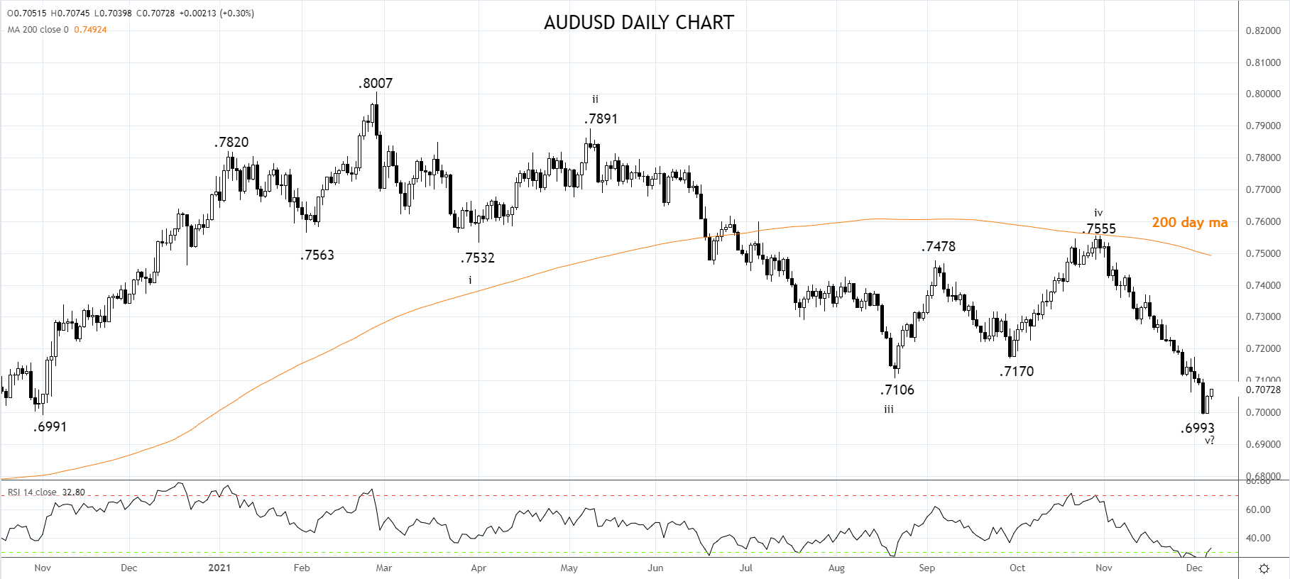 技术面来看,只要澳元/美元守在关键的0.7000/0.6990支撑区域上方,或可强势反弹,攻向阻力位0.7170/80,从而扭转RSI指标超卖情形,并对澳洲联储态度的微妙变化做出回应。