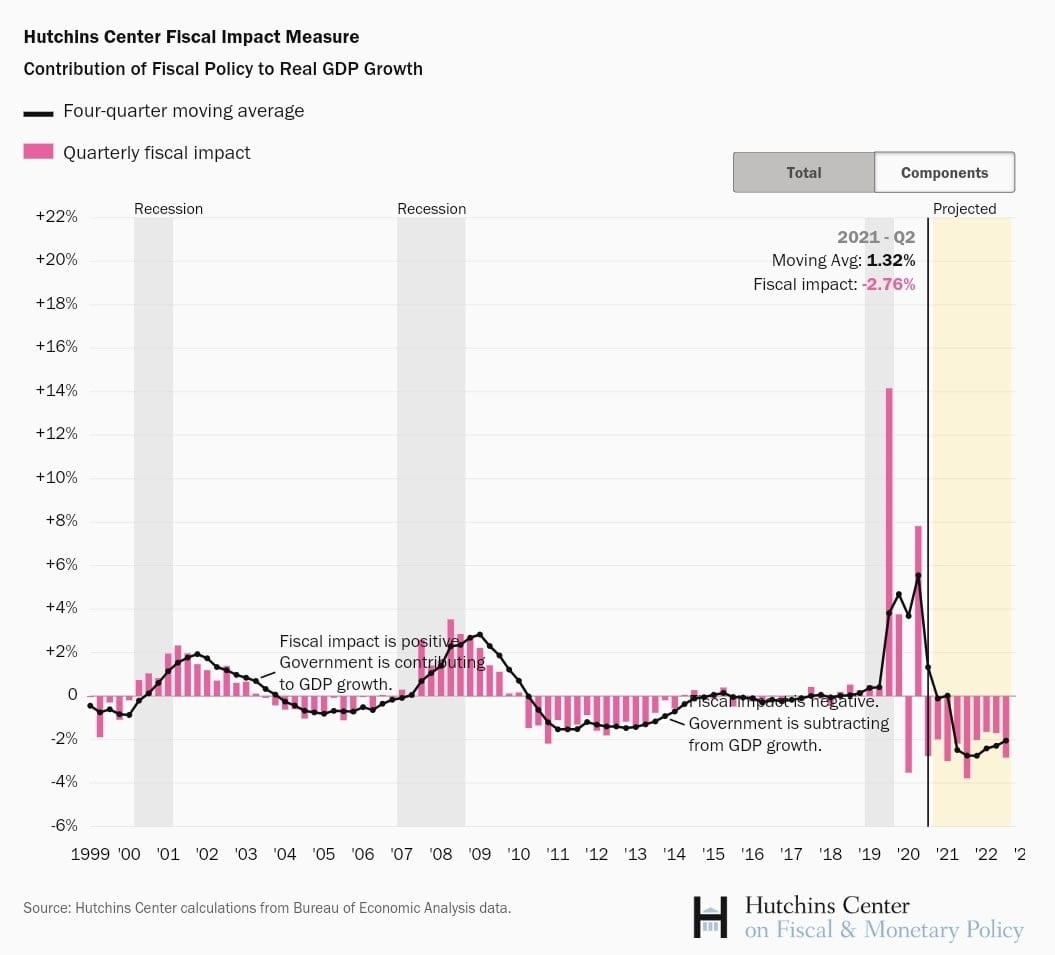 而之前的财政政策在2022年也可能从利好变成利差。各国政府要修复千疮百孔的资产负债表,回应选民对物价上涨的关切。我们以美国为例,哈钦斯财政和货币政策中心(Hutchins Center on Fiscal and Monetary Policy)预计,财政政策已经从增加真实GDP转变成减少实际GDP,并且财政政策料在可预见的未来构成不利因素:
