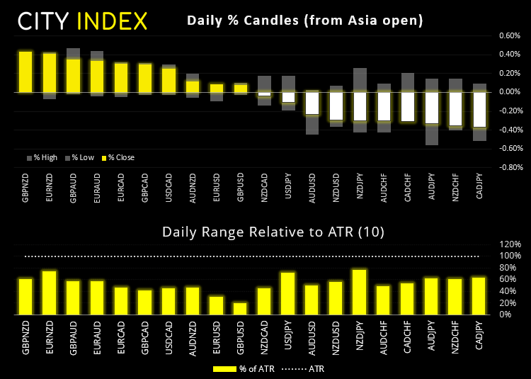 鉴于美国市场走低并回吐昨日FOMC会后全部涨幅,我们需要看看今天欧洲市场情绪风向。但若富时100指数能守在7200附近支撑区域之上(此处包括4小时图200均线、50%回档和前波段低点),我们倾向看好股指回攻7400高点。