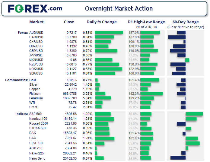 澳元和纽元是隔夜最强主要货币,兑美元双双上涨0.8%左右。日元是主要货币中唯一兑美元下跌的货币,跌幅也不大,只有0.1%。就连英镑都收高0.75%,摆脱三季度GDP下修、英国可能在圣诞节后进入第四轮封锁管控的影响。