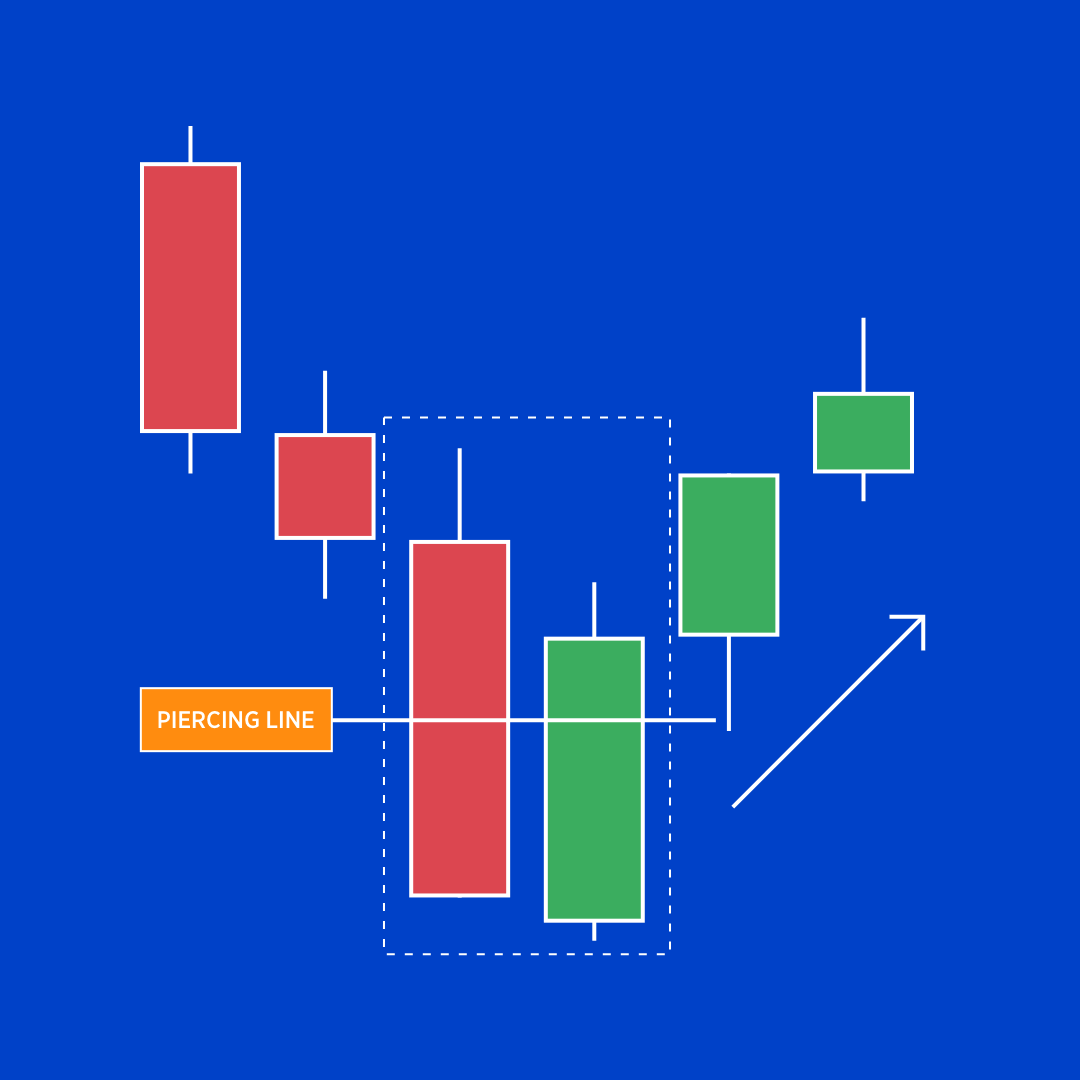 但不同的是,阴线拥有长实体且不被第二根吞没。市场在阴线收盘价和阳线开盘价之间存在跳空下跌缺口,但之后反弹至前一时段的中间价(“刺穿线”)。