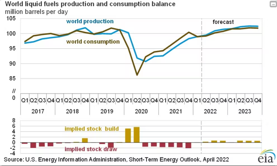 EIA也因为全球成长极可能放慢而下调其对2022年全球石油燃料消费的展望,从之前的1.006亿桶下调至9980万桶/天。EIA还上调对天然气价格的预测值。