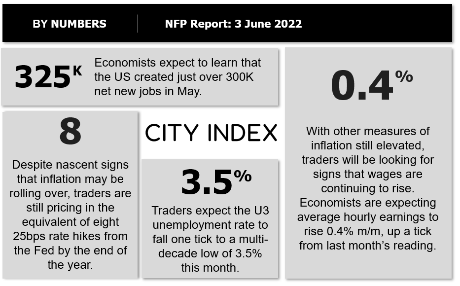 对于5月非农就业报告,主流预期值是净新增32.5万人,而平均每小时收入月率预计上涨0.4%: