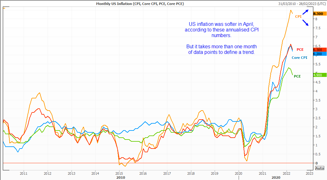 我们知道上月通胀报告揭晓后可能有不少以“通胀触顶”为题的消息。4月CPI据预测自数十年高点回落,而在看到符合预测的实际结果后,市场感到满意。