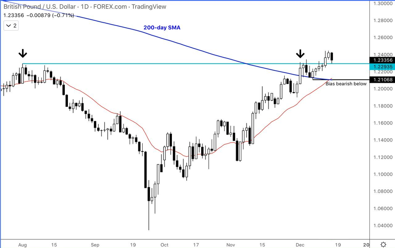 货币对价格在1.2290/1.2300区域徘徊,突破后从上方不断测试。如果英镑/美元每日收盘价均在此区域上方,则看涨趋势有望延续。若失守这一区域,则会迎来空头。如果货币对价格跌至近期低点和200天移动均线附近的1.2105点,空头观点可以确认跌势形成。