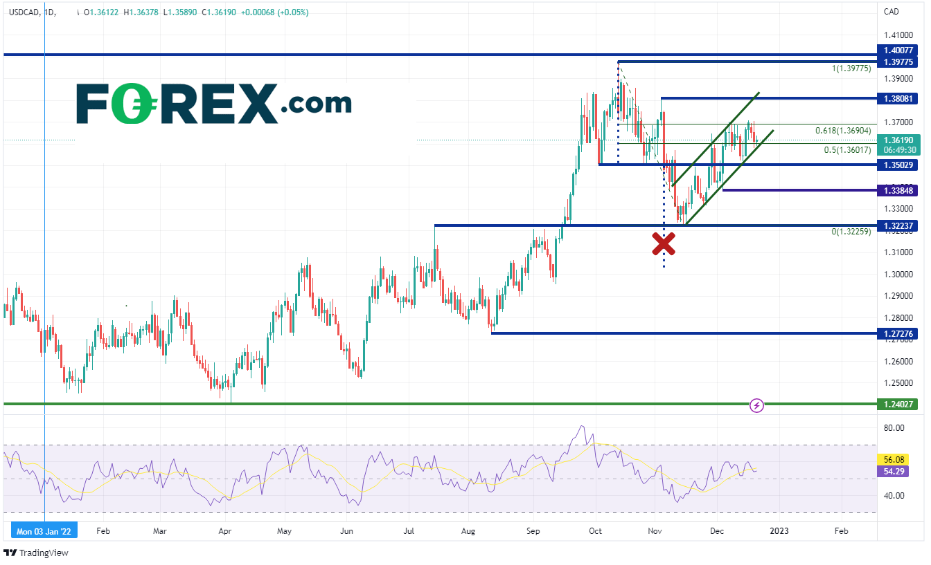 4小时图内,美元/加元上个月上升,但近期陷入波动,试图突破上文提到的61.8%回档位。不过货币对从11月中以来一直维持上升通道。如果货币继续攀升,第一道阻力位将落在12月16日高点1.3705。由此向上,货币对将向11月3日高点1.3808进发,最后再在上行通道上轨的1.3840附近遇阻。美元/加元目前交投价位于通道下轨附近。如果货币对继续下跌,第一个支撑位落在头肩形态的颈线位置,靠近1.3502。由此向下,第二个支撑位位于12月4日低点1.3390,继续下探还能在11月16日低点1.3690附近找到最后的支撑位。