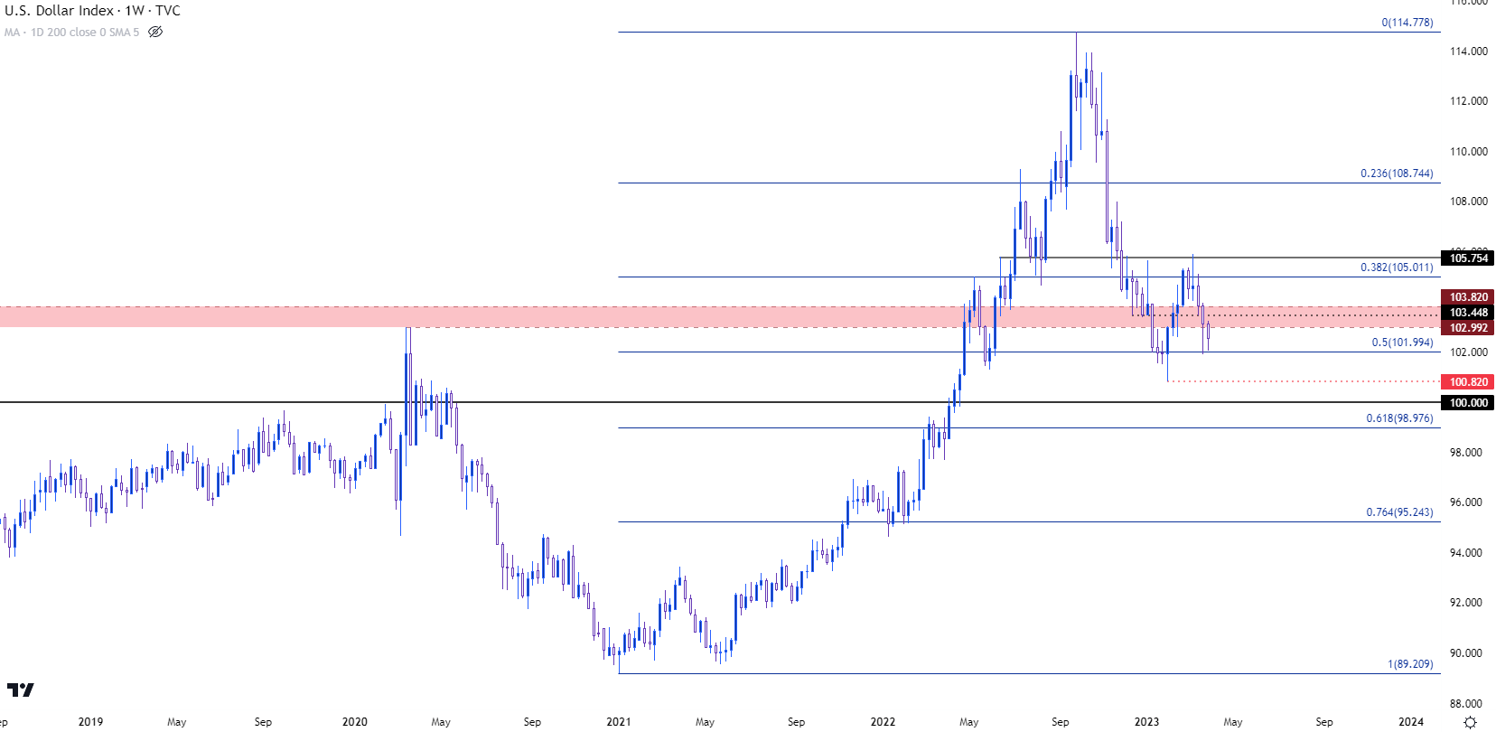 虽然2023年的第一周走势坎坷,但欧元/美元在1.0500附近获得支撑,随后非常糟糕的服务业PMI报告推动美元再次走弱。这使得欧元/美元延续涨势,最终在2月初触及阻力位1.1033。这是从去年2月到9月低点的主要走势的76.4%斐波那契回撤位,价格在此处遇阻后,空头接管了接下来六周的大部分时间,直到另一个支撑位出现。