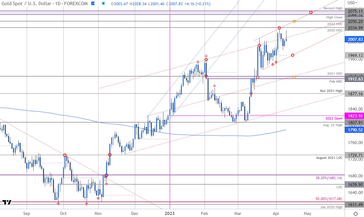 图表由高级技术策略师Michael Boutros编制; TradingView上的黄金/美元