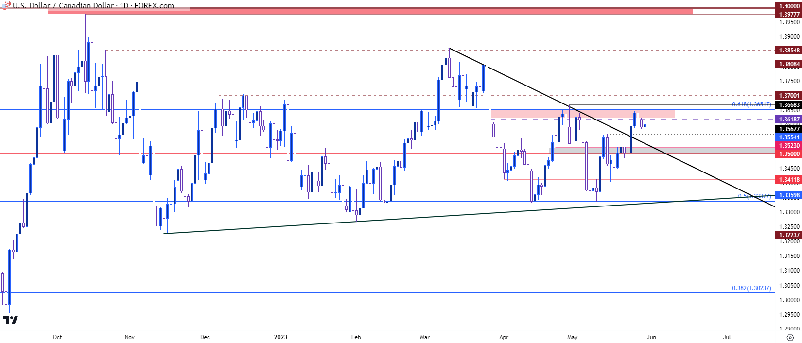 图表由James Stanley绘制,Tradingview上的美元/加元