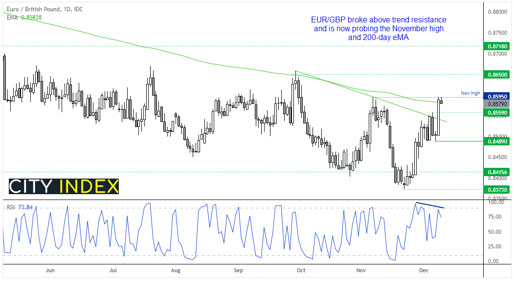 欧元/英镑触及11月高点