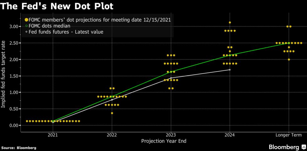 点阵图还显示FOMC成员预期2022年和2023年都加息3次。