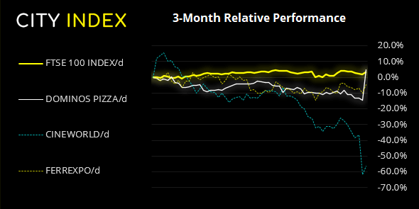 - + 13.2% - Cineworld Group PLC (CINE.L)