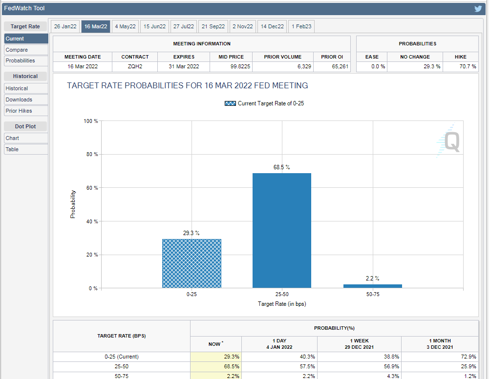CME Fedwatch工具显示,在上述会议记录发布后3月加息几率即跃升至68.5%。
